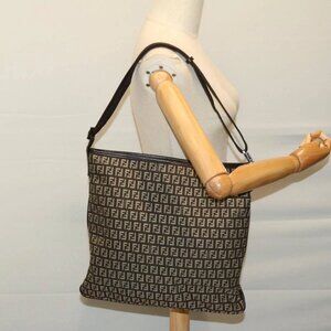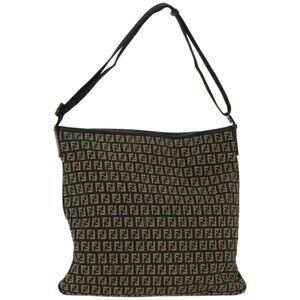 FENDI Zucchino Canvas Mamma Baguette Shoulder Bag Brown Auth