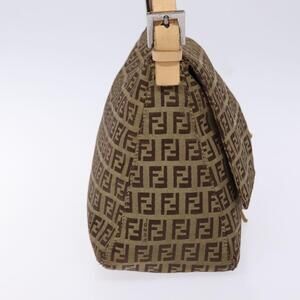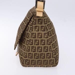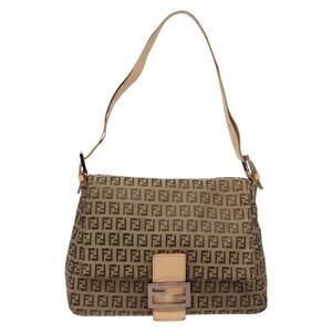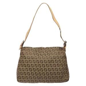 FENDI Zucchino Canvas Mamma Baguette Shoulder Bag Brown Silver