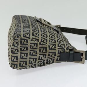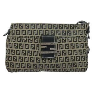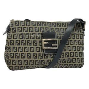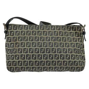FENDI Zucchino Canvas Mamma Baguette Shoulder Bag Navy Silver