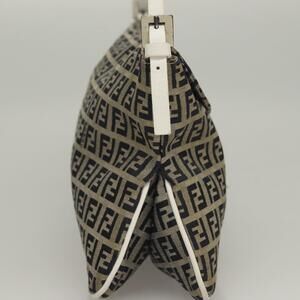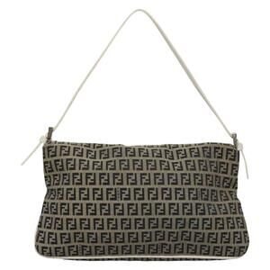 FENDI Zucchino Canvas Mamma Baguette Shoulder Bag Navy Silver