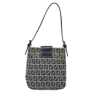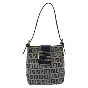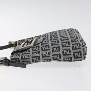 FENDI Zucchino Canvas Mamma Baguette Shoulder Bag Navy Silver