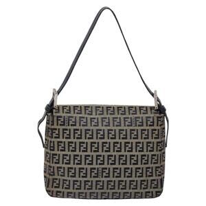 FENDI Zucchino Canvas Mamma Baguette Shoulder Bag Navy Silver