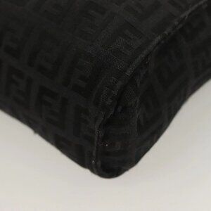 FENDI Zucchino Canvas Pouch Black Silver Auth