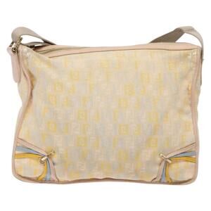 FENDI Zucchino Canvas Shoulder Bag Beige Gold