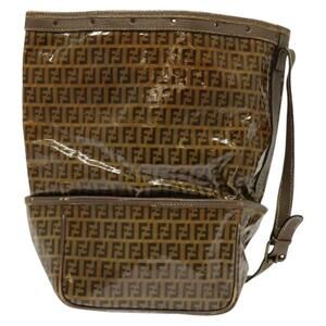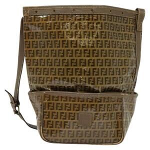 FENDI Zucchino Canvas Shoulder Bag Brown