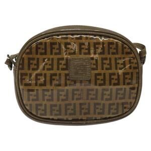 FENDI Zucchino Canvas Shoulder Bag Brown