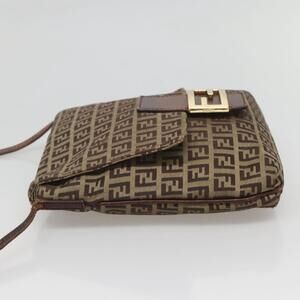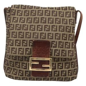 FENDI Zucchino Canvas Shoulder Bag Brown Black