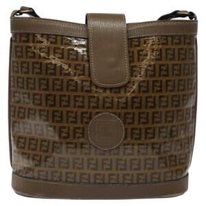 FENDI Zucchino Canvas Shoulder Bag Enamel Beige Gold