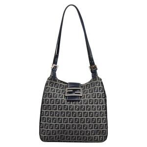 FENDI Zucchino Canvas Shoulder Bag Navy