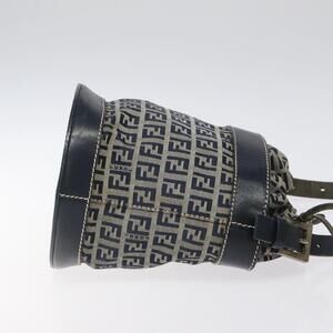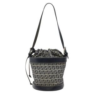 FENDI Zucchino Canvas Shoulder Bag Navy Silver