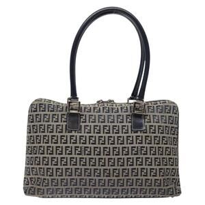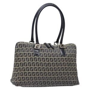 FENDI Zucchino Canvas Shoulder Bag Navy Silver