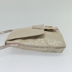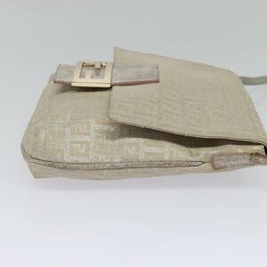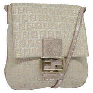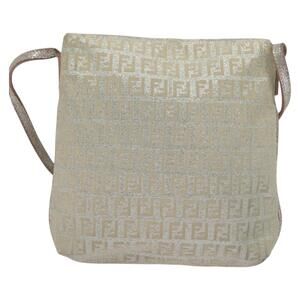 FENDI Zucchino Canvas Shoulder Bag Silver Gold