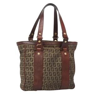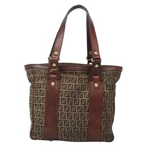 FENDI Zucchino Canvas Tote Bag Brown Gold