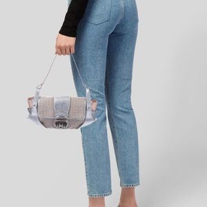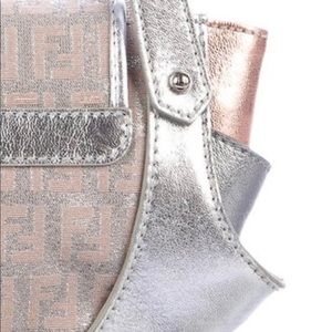 FENDI Zucchino Cream & Silver Leather Shoulder Bag