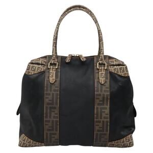 FENDI Zucchino Hand Bag Coated Canvas Pvc Black Gold