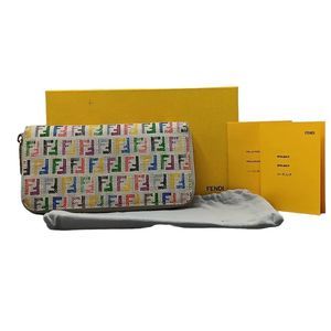 FENDI Zucchino Spalmati FF Multicolor Large Size Zip Wallet White Multicolor