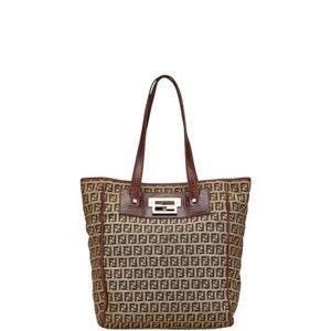 FENDI Zucchino Tote Bag Shoulder 8BH174 Beige Brown Canvas Leather Women's