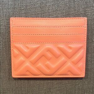 Baguette card case with central compartment and six card slots. Made of soft, pink nappa leather with the iconic FF motif embossed with a three-dimensional effect.