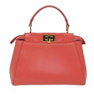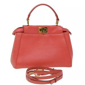 FENDI micro picaboo Hand Bag Leather 2way Orange