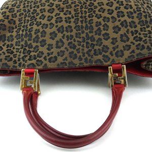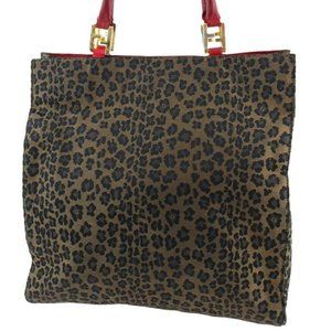 FENDI tote bag leopard leopard beige canvas �~ leather Auth T19846