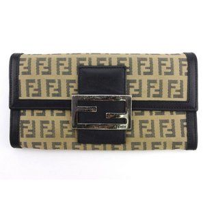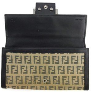 FENDI wallet Zukkino beige canvas �~ leather Authentic used