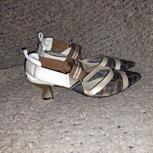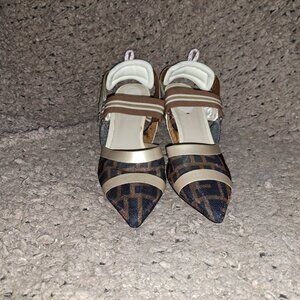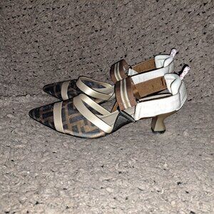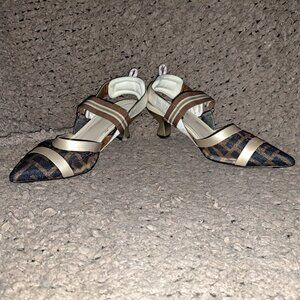 FENDI-Colibri Pumps Sandals-Zucca-Slingback-Metal Heel-Sz 39-Near Mint