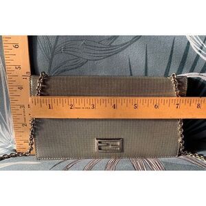 FENDI Metallic Calfskin Wallet On Chain Silver Clutch Purse AUTHENTIC $3800