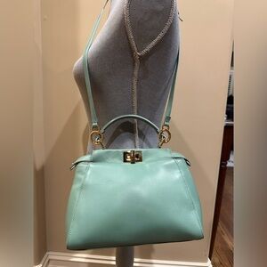 FENDI Nappa Mini Peekaboo Iconic Satchel Menta
