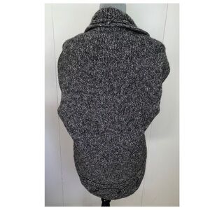 FENN WRIGHT MANSON open style knit gray marled cardigan sweater with a touch of brown. 34% cotton/28% acrylic/26% wool/12% polyester. Cable knit around the edge of it. Gently used.