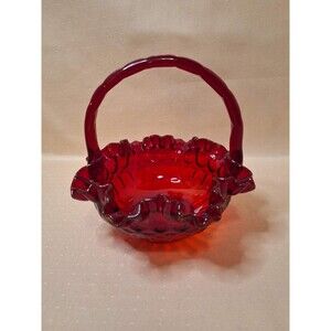 FENTON ART GLASS 1964 THUMBPRINT RUBY 8" BASKET