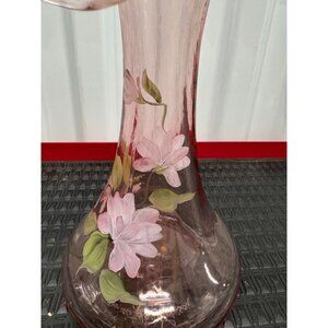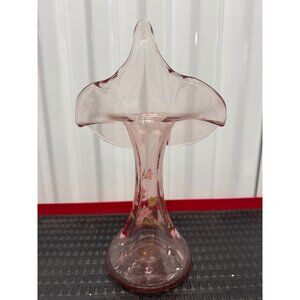 FENTON HAND PAINTED FLOWERS & SIGNED FENTON JACK IN THE PULPIT PINK GLASS VASE