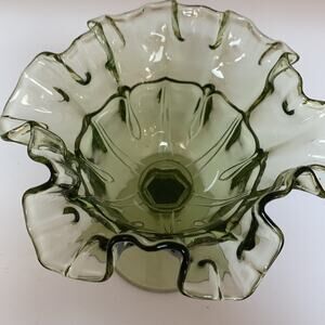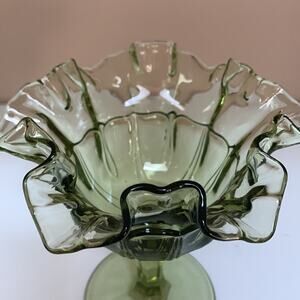 Gorgeous green Fenton ruffled edge compote or ice cream dish. Excellent vintage condition.