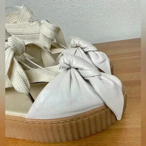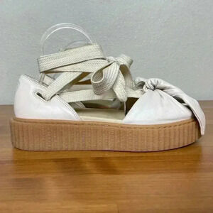 FENTY PUMA Women's 8.5 The Bow Creeper Sandals Cream Leather Lace Up Flatform