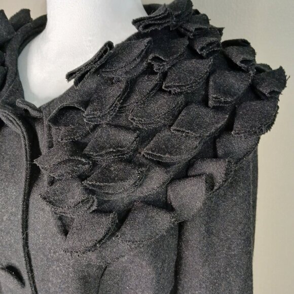 FERATELLI WOOL BLEND COCKTAIL JACKET, RUFFLED COLLAR AND CUFFS, GRAY, SIZE XL