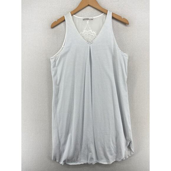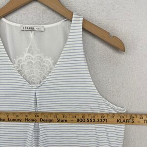 FERAUD PARIS Nightgown L V-Neck Striped Sleeveless Sleepwear Slip Dress Blue