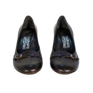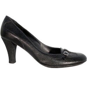 FERRAGAMO Black Wingtip Buckle Rubber Heel Pumps 8 2A - Made in ITALY