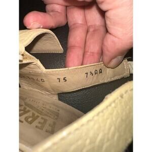 GREAT CONDITION FERRAGAMO OFF WHITE OR CREAM SANDALS WITH STACKED HEEL. EITHER ALLIGATOR OR CROCODILE STAMPED LEATHER OR ACTUAL ALLIGATOR - I'M NOT SURE - THESE ARE FROM MY MOTHER'S ESTATE. SIZE 7.5AA.
