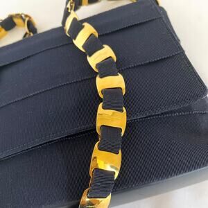 FERRAGAMO Canvas Leather Chain Shoulder Crossbody Bag Navy