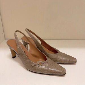 FERRAGAMO Women’s Heeled Sling Back with Gancini VINTAGE kitten heels designer