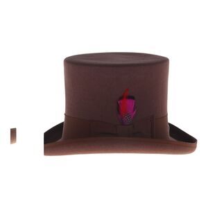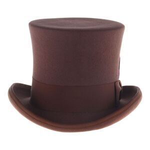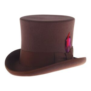 FERRECCI MENS PREMIUM TOP HAT IN BROWN WOOL VICTORIAN ELEGANCE WITH SATIN LINING