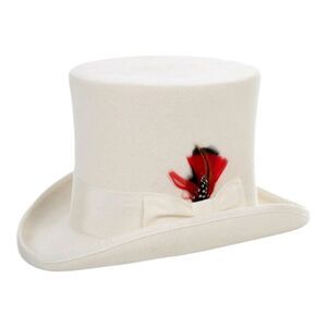 FERRECCI MENS PREMIUM TOP HAT IN WHITE WOOL VICTORIAN ELEGANCE WITH SATIN LINING