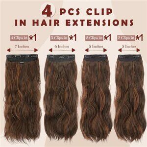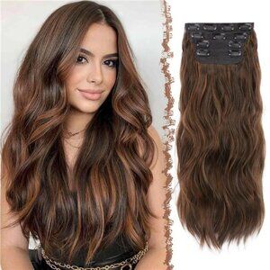 FESHFEN Clip in Hair Extensions for Women - 4 Pcs Thick Double Weft Long Wavy