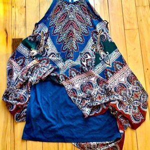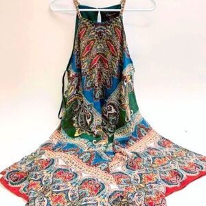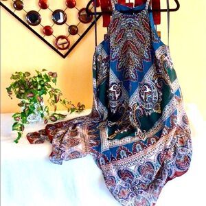FESTIVAL NIGHT RIDER BOHO KERCHIEF HEM DRESS - TRUE TEAL/TAN 8 NWT