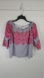 {FEVER} Blue White Striped Red Eyelet Embroidery Blouse - Size Medium