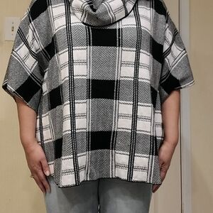 FEVER Women's Black & White Plaid Pullover Poncho Sweater - Size L/XL