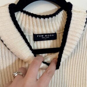 FEW MODA NEW YORK Chic Cream Sweater with Black Trim Bows, Size S