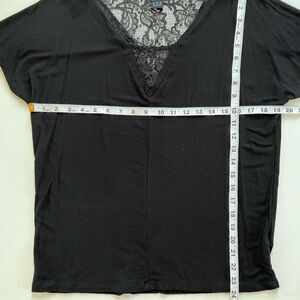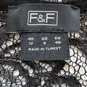 F&F Black Lace V Neck Short Sleeve Slip Over Blouse Size 8