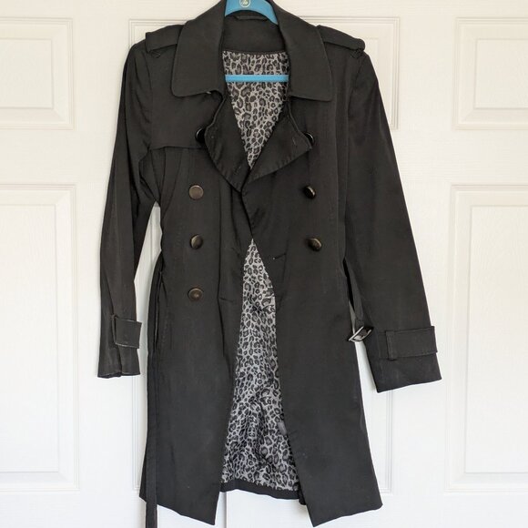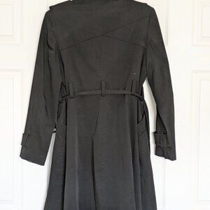 Versatile black trench coat, perfect for spring, travel and rainy days. Cute back details. Says 14 but fits snug, could be Medium to Large.