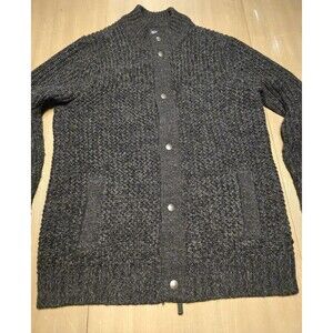 F&F Mens Black Grey Marl Chunky Wool Blend Knit Zip Front Cardigan Size Large