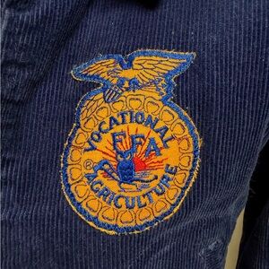 Stylish blue FFA jacket with embroidered details. Unique and Vintage addition to any outfit!